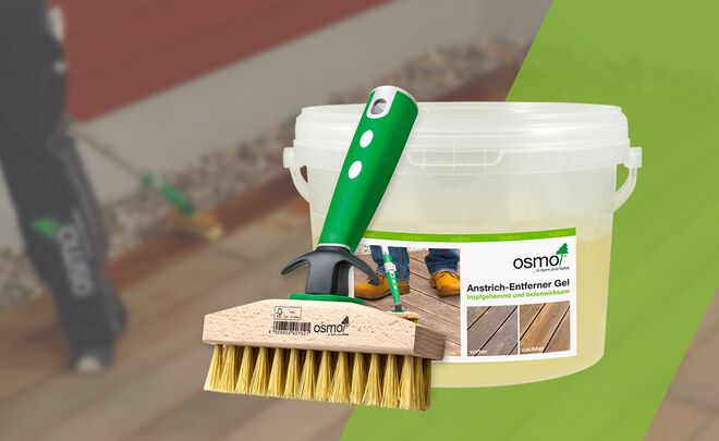 Ready-to-use, viscous paint remover especially developed for removing old existing oil surface finishes in outdoor areas. Afterwards the surface can be degreyed/neutralized  with Osmo Wood Reviver Power-Gel and then re-oiled.