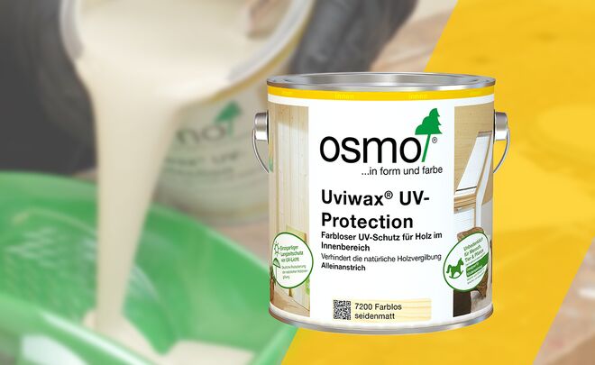 Uviwax® UV-Protection ist ein Alleinanstrich. Bitte nicht mit anderen Farben verdünnen oder mischen. Soll eine mit Uviwax® UV-Protection geschützte Oberfläche farblich umgestaltet werden, empfehlen wir ausschließlich Osmo Wohnraum-Wachs zu verwenden.