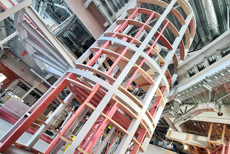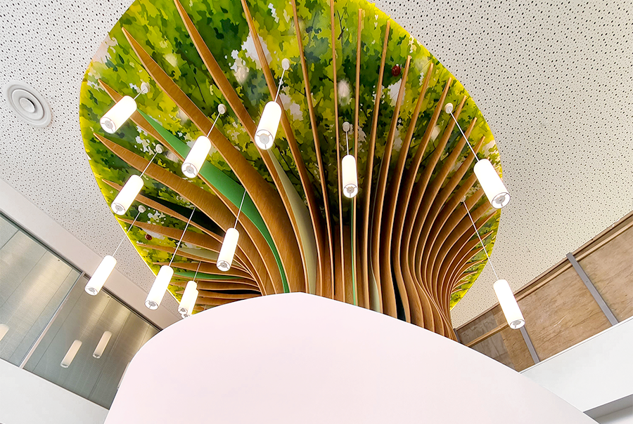 The staircase wraps its way up the trunk of the tree to allow the children to touch and feel the tree creating an interaction, thus enhancing the analogy that the forest is life giving, and this is what the Children’s Hospital is all about.
