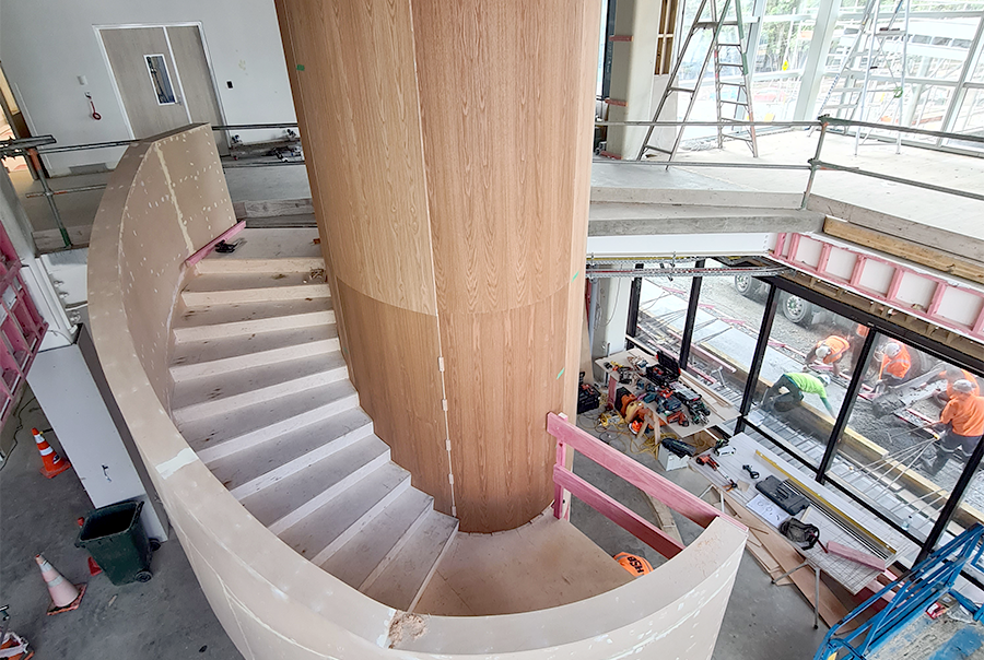Osmo Polyx Oil satin 3032 was chosen to coat the veneer and solid oak handrails, to provide protection from the everyday wear and tear in a high pedestrian area. The ease of maintenance was an additional factor in selecting the Polyx Oil, as well as having environmental and general food safe properties. Polyx Oil was a logical choice for a venue such as a Children’s Hospital.
